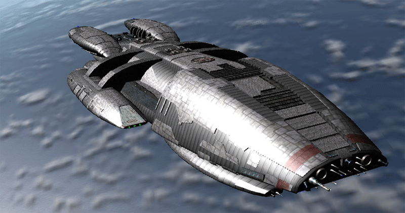My version of the Flatbed or Flattop general purpose ship seen in both the new and old BSG TV series and has features like a deck that you can land on.